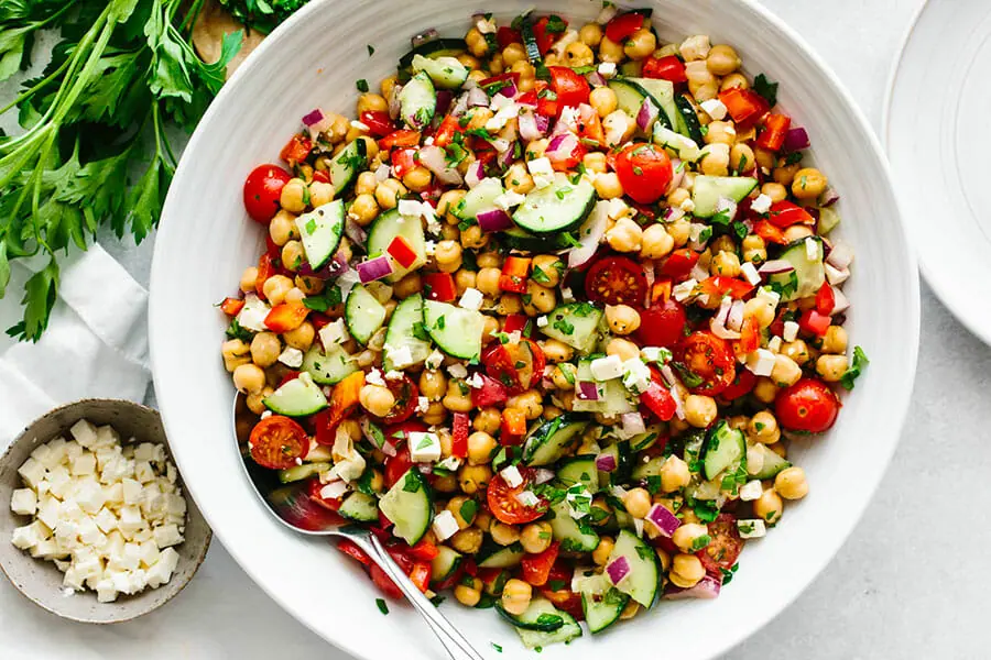 Salade pois chiches, concombre, citron (10min - 350 kcal)